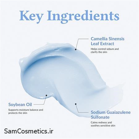 این محصول فاقد الکل، پارابن و مواد تحریککننده است و با فرمولاسیون آرامبخش شامل Sodium Guaiazulene Sulfonate، پوست حساس را التیام میبخشد و قرمزی را کاهش میدهد.