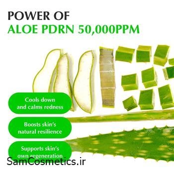 • Aloe PDRN: بازسازیکننده و تسکیندهنده پوست