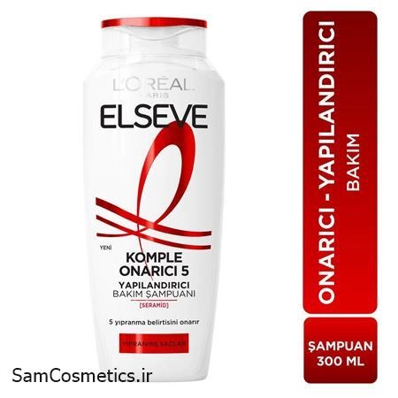 ویژگی های شامپو السیو لورال مدل Komple Onarıcı 5 حجم 300 میل | موهای آسیب دیده حاوی سرامید | L'Oreal Elseve