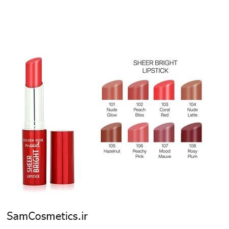 رژ لب براق شاین گلدن رز | Golden Rose مدل Sheer Bright رنگ Peachy Pink شماره 106