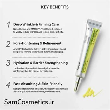 - حاوی 0.1٪ رتینول لیپوزومی خالص و 3٪ MATRIXYL® 3000