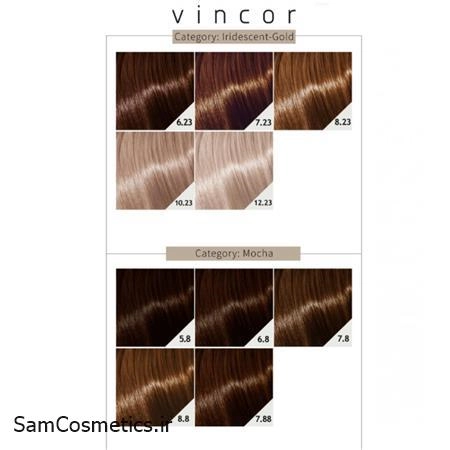 رنگ مو وینکور Vincor از ریزش و نازک شدن موها جلوگیری کرده و به طور کامل موهای سفید و خاکستری را پوشش می دهد. این محصول حاوی فیاتر UV است و از تغییر رنگ مو به دلیل تابش اشعه خورشید جلوگیری می کند. این رنگ مو به دلیل بهره مندی از ترکیبات کراتین، روغن آرگان و شی باتر مرطوب کننده و تغذیه کننده مو است و نتیجه استفاده از آن داشتن موهایی نرم و درخشان است.